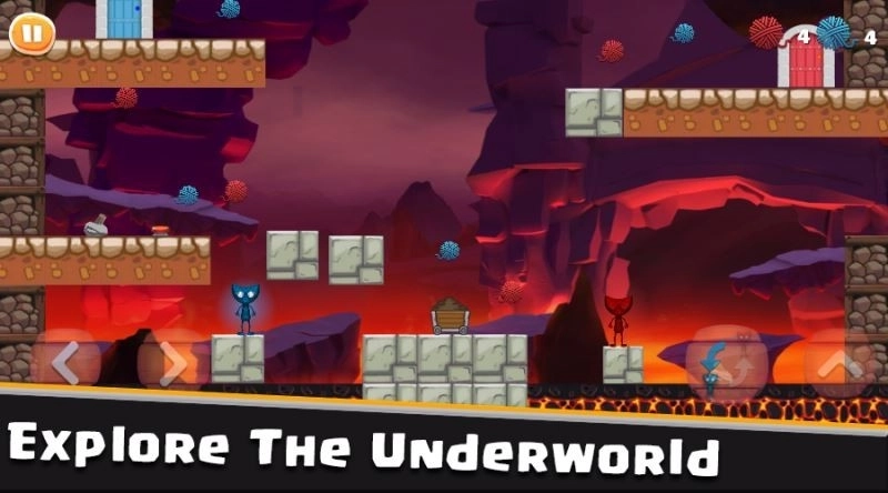 两个冰火人会在游戏的看似站在不同的位置上,如果是在吊梯上你就需要控制一端的角色跳一下,由于惯性的作用吊梯会慢慢的倾向跳动的一端,加入了大型的宝石关卡内容,拥有难度较高的挑战,设计了不一样的控制系统。