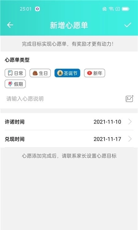 2.通过这款软件设置一个心愿单,填好许愿和兑换时间,然后赠送奖励,这样才会更有动力。