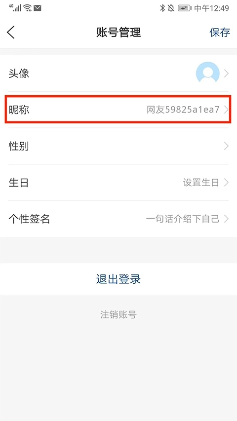 2、进入账号管理界面,选择【昵称】选项,