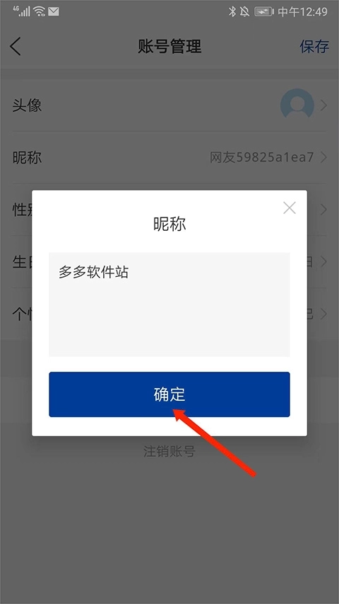 3、在输入框中输入需要修改的昵称,然后选择【确定】即可修改昵称。
