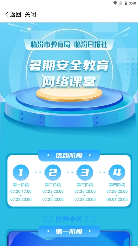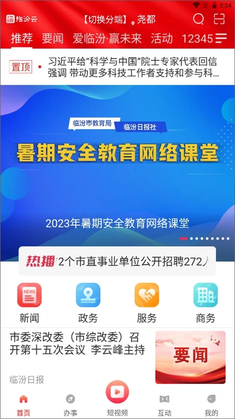 1、打开临汾云app,在首页找到并点击进入暑期安全教育网络课堂;