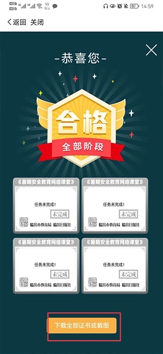 2、活动有四个阶段任务,需要将四个阶段的任务全部完成,任务完成后点击下方的下载证书;