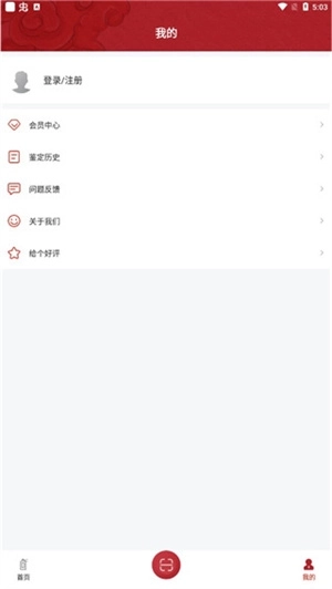 1、首先进入茅台镇国酒nfc溯源鉴定APP,点击我的进行登录注册;