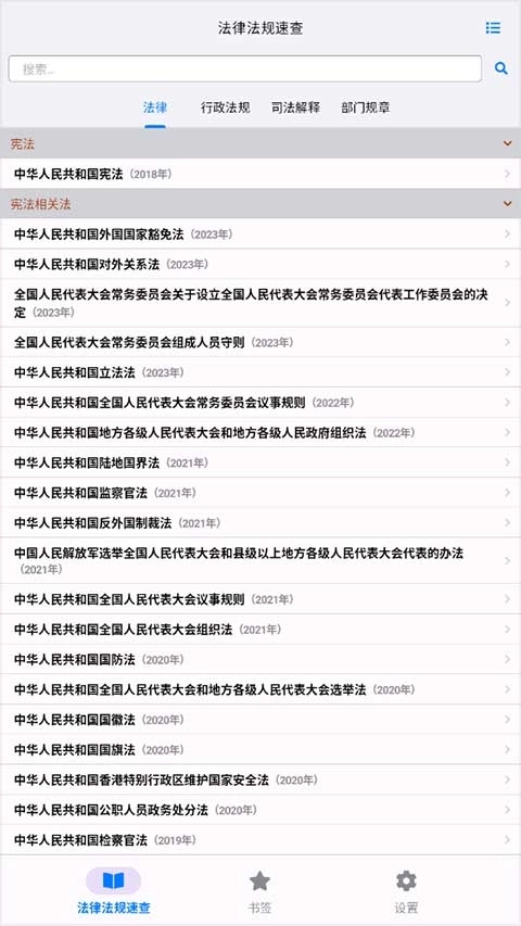 1、启动法律法规大全软件后,进入法律法规速查页面,既可以逐页翻阅浏览,也能通过页面上方的搜索栏快速检索到所需的法条内容。