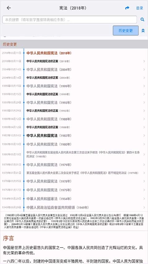 2、点击进入即可阅读,点击右上角的“历史变更”还可以看到具体的变更年份及变更内容。