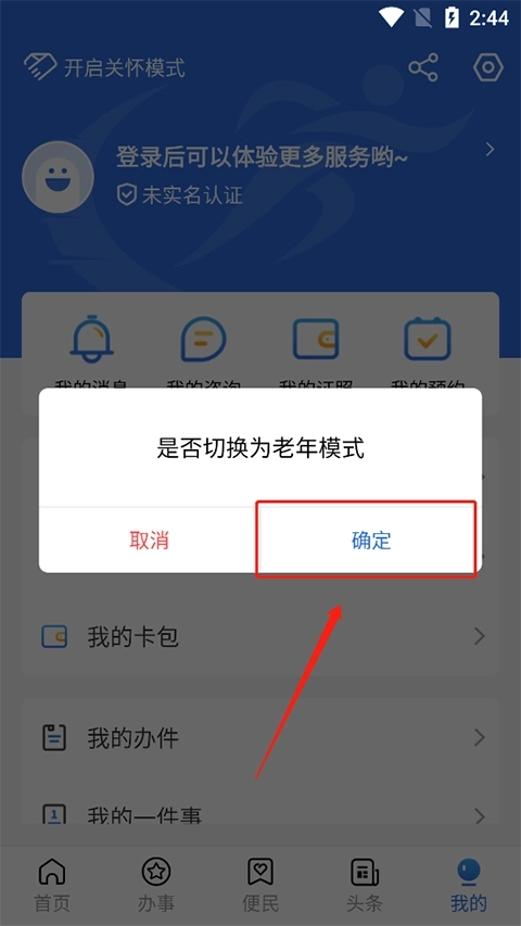 3、此时会弹出一个对话框,显示“是否切换为老人模式”,点击“确定”按钮即可。