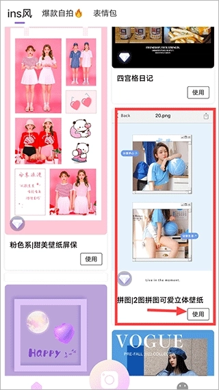 3、多姿选择用1000多种贴纸拍出各种风格的照片和视频,每天都更新。