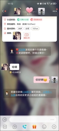 4、另外,聊天过程中还有机会得到积分奖励,而且上传自己的头像后,能收获更多小姐姐的关注呢。