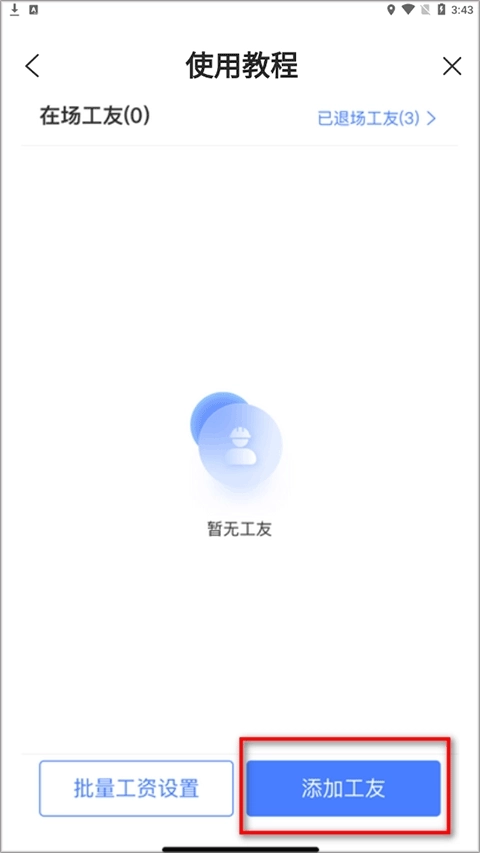 3、进入工友管理中,选择添加工友。