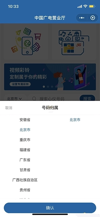 1、打开中国广电app,登录账号后,在号卡专区选择号码归属地