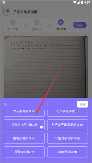 2、在文本内容输入完毕后,点击“确定”按钮,即可进入纸张样式的选择界面。这里提供了草稿纸、信纸、格子纸等多种选项,能够模拟出生活中不同的手写场景。