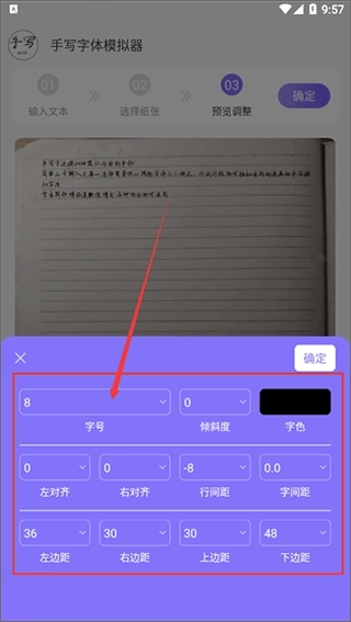 4、同时还能依据预览呈现的效果,对文字的大小、颜色、字间距与行间距进行调整,直至达到自己满意的效果。