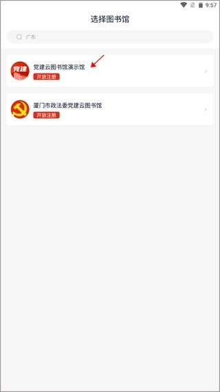 打开软件后,需先选择一个图书馆完成注册,选定后即可进入该图书馆。