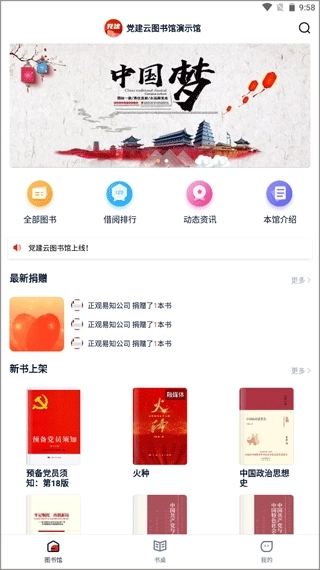 党建云书馆官方APP由新华书店依托移动互联网、云计算等技术搭建而成,旨在快速、便捷且低成本地构建一套完整的移动数字云图书馆系统。该APP主要具备云图书馆的文献采购、资源管理、文献借还及用户管理等功能。此外,其操作十分简便:用户下载APP后,选择对应的云图书馆提供单位,完成注册登录即可进入图书馆进行文献借还与使用。同时,通过党建云书馆手机版,用户还能及时获取最新资讯动态,查询所需文献信息,无论是日常学习还是资料查询都能满足需求,助力大家轻松实现线上阅读。