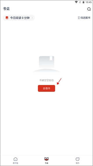 1、切换到【书桌】页面,点击中间的“去借书”。