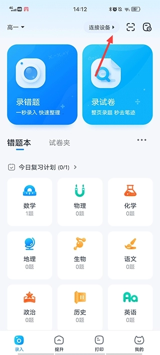 1、拍照打印错题,或搜题找到题目,并支持加入错题本收纳整理。