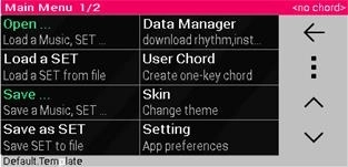 这部分包含四个选项:声音/循环、键盘设置、风格选择以及和弦/迷你键盘