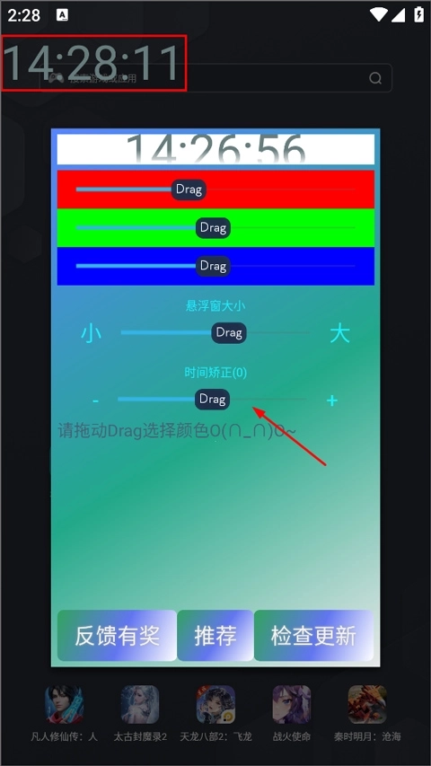 3、打开设置页面,用户可设置时间字体颜色、大小以及悬浮窗大小等,设置好之后即可在桌面显示。