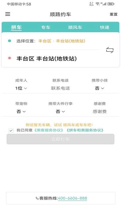 《顺路约车乘客端》软件测评: