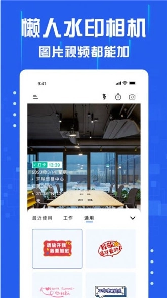 3、用户可以打开相机并选择他们想要添加的水印文字或自定义水印图片。