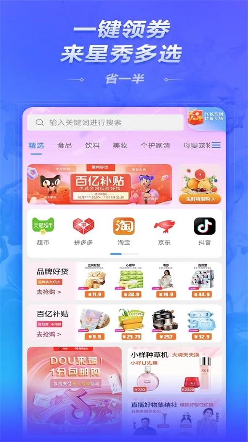 星秀多选是一款性价比超高的手机购物软件,它携手百万品牌,涵盖主流电商平台超90%的折扣商品,让用户能在单一平台轻松选购各类品牌好物。依托与众多品牌的深度合作,星秀多选确保所售商品品质可靠,用户可安心下单。