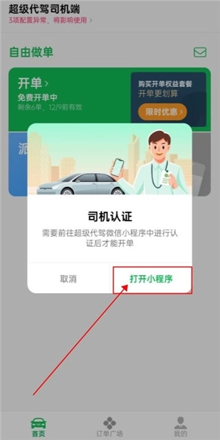 4、认证结束后回到软件,点击订单广场