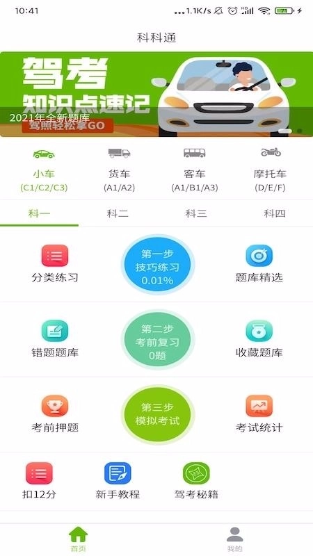 科科通app是专门为驾考学员打造的科目一、科目四学习工具,学员可以借助app便捷获取对应的题库资源,从此就能在这里轻松开展题库练习。通过练习题库,您能够掌握更多试题内容,进而更好地应对各类试题信息,助力您在考试时充分发挥自身实力,顺利通过科目一、科目四考试。平台涵盖小车、客车、货车、摩托车等多种车型的考试题库,能满足不同驾考人群的学习需求,帮助广大考生学得更快、记得更牢,让驾考过程变得轻松顺畅,是您驾考路上的得力学习助手。