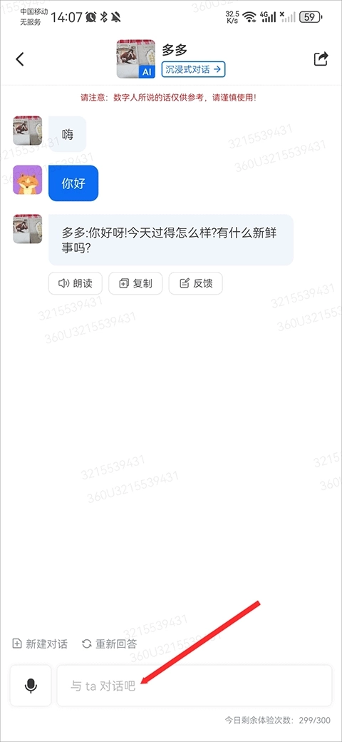 4、点击该按钮即可进入对话界面,随后你就能在下方的对话框中输入内容,与数字人展开对话了。