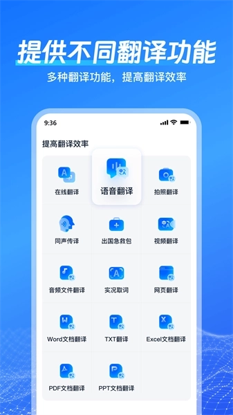 1、不仅仅专注于语音翻译,还提供了文本翻译、同声传译和拍照翻译等功能