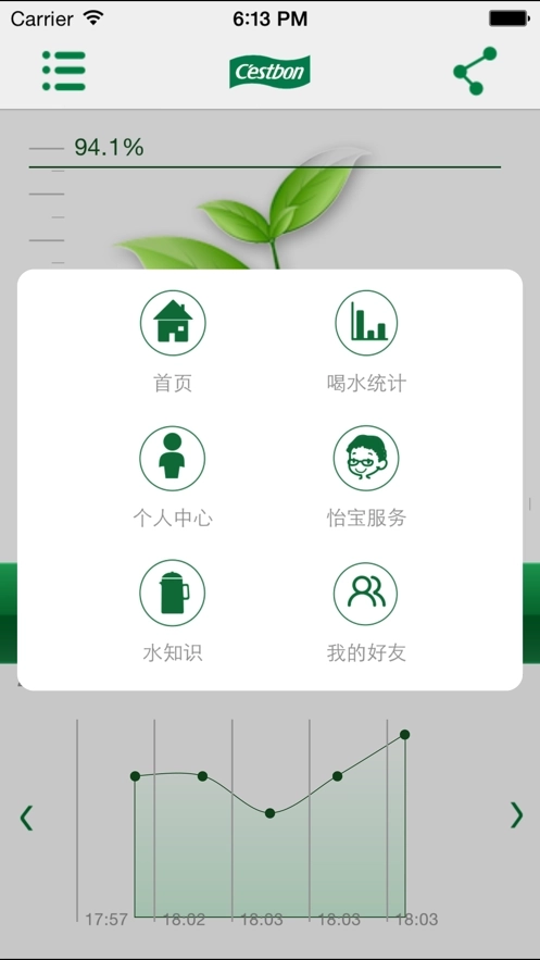 3.统计的数据会呈现一个图表状态,很直观的看到饮水变化。