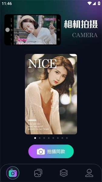 1、多种拍照玩法,用户可以选择不同的场景模板进行拍照,例如美食、旅游、人物等等,轻松制作出独具创意的照片;2、平台提供海量模板资源,涵盖贴纸、滤镜、字体等多种类型,用户只需一键套用,就能快速生成高质量图片,且呈现出的效果保持一致。