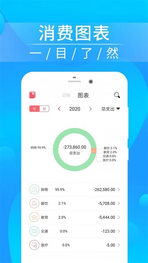 *智能统计图表呈现财务状况,借助图表形式展现用户的收入、支出、存款等财务信息,直观易懂,助力用户清晰掌握。