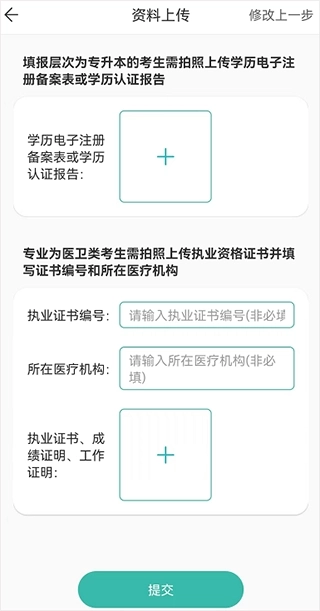 报考专升本、医药护理专业的考生需要拍照上传“学历电子注册备案表”