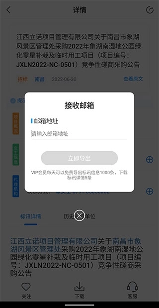 每天可免费导出50条标讯详情