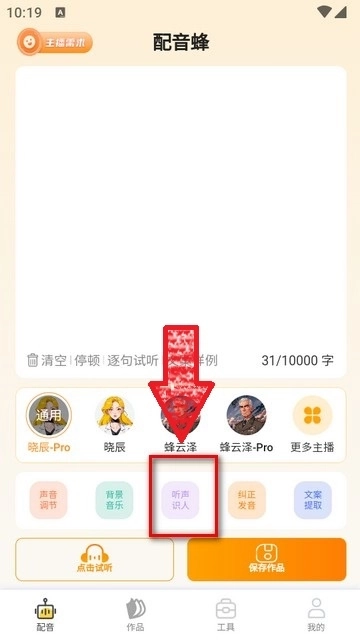 1. 进入配音界面,点击“听声识人”功能。