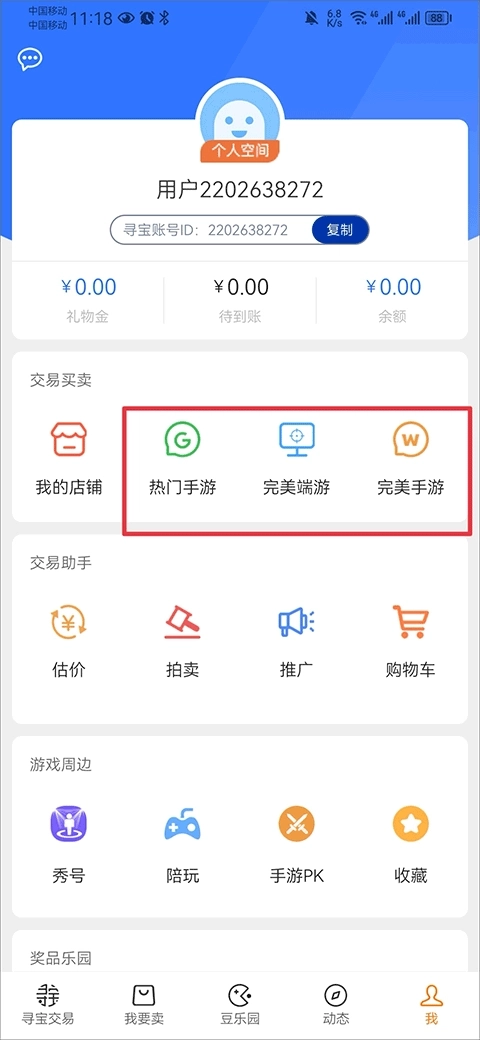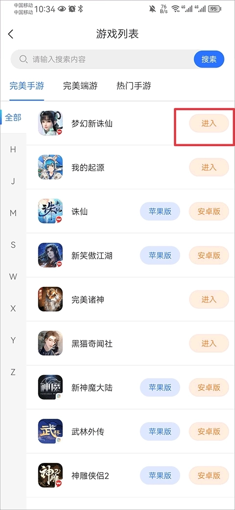 1、在我的界面中选择热门手游、完美端游、完美手游进入