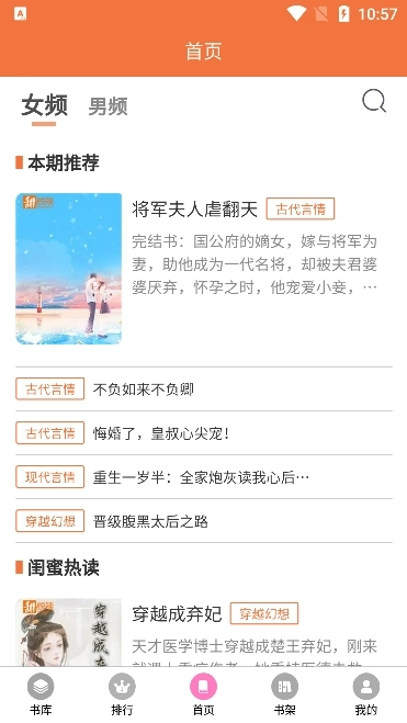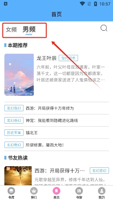 2、 点击后,男频和女频可以自由切换。