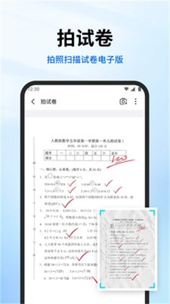 1、试卷扫描功能,仅需一键操作,就能把各类试卷迅速、精准地还原成清晰的原始版本;