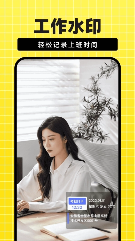 3、打卡拍照无需等待,一键添加各类水印,快速上传。