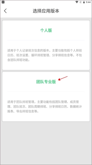 2、页面会弹出两个选项,分别是个人版和团队专业版,选择下方的那个选项。