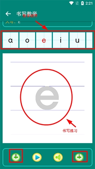 6、拼音笔画演示、拼音描红。动态演示如何写拼音,教你正确书写拼音。