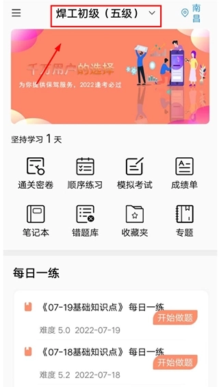 登陆焊工证考试题库免费软件,在点击首页最上方,跳转至另一页面即可选择