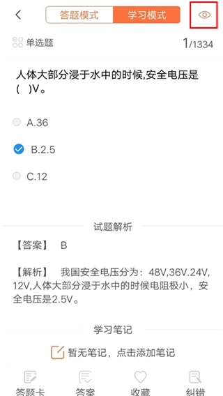 【答题模式】自行答题,答题完成后,会订正错误,然后给出正确答案及解析