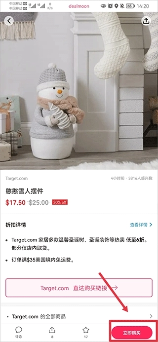 进入商品详情页面后,可直接点击“立即购买”,随后会跳转至国外购物软件完成下单操作,需要注意的是,国内用户使用该国外软件需通过科学上网方式。