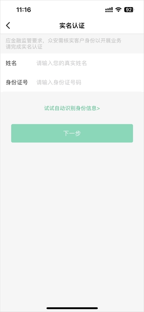 5、当你选择的是人脸认证方法的话,就需要输入名字身份证号点击下一步进行人脸认证哦。