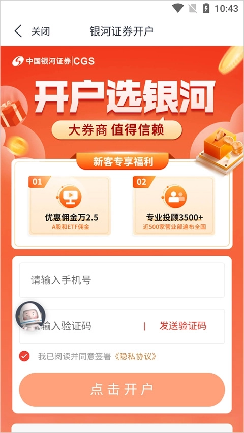 4、随后进入证券商的开户页面完成正式开户操作,用户只需在该页面填写手机号并输入验证码,点击【立即开户】按钮,即可依照页面流程提示走完整个开户流程。