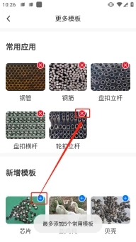 5、该软件最多支持添加五个常用应用。若要添加新模板,需先删除不再使用的常用模板,之后才能进行新增操作。