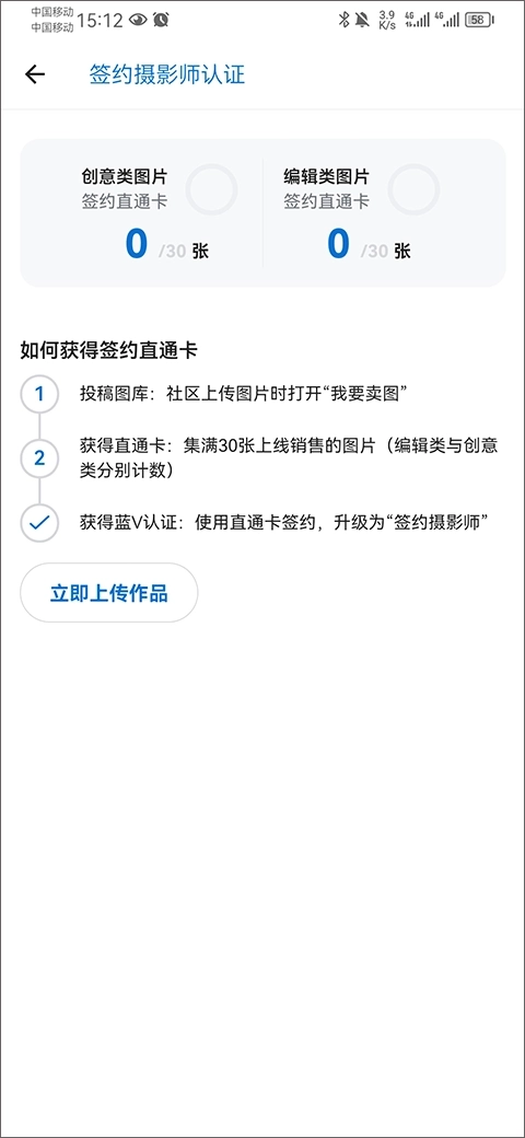2、当审核入库累计上线满30张后即可获得签约直通卡升级为签约摄影师。