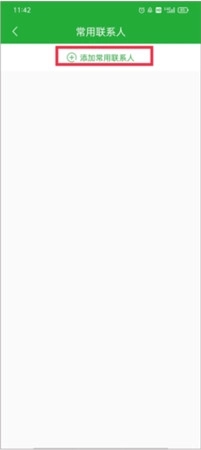 2、这个常用联系人界面会显示你之前添加的所有常用联系人信息列表,点击红色框框的“+添加常用联系人”按钮。