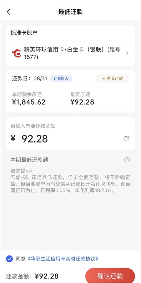 华彩生活信用卡app怎么提前还款(最低还款)